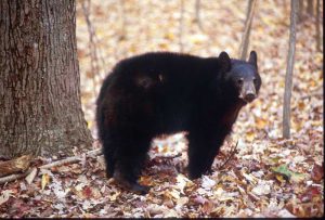 Black bears (Ursus americanus), removed from the state in the 1800s by deforestation and predator control programs, were completely extirpated from Ohio by the 1850s. However, like the bobcat, numbers have been consistently rising throughout the last few decades! As natural succession increases the acreage of forested land in Ohio, black bears have been able to return. According to the division of Wildlife, there were 105 black bear sightings (representing about 58 individuals) in 2005, including sows with cubs. As of 2022, that number increased to a remarkable 285 sightings! 19 of those were in Athens county, second only to Ashtabula county, and 67 of the total sightings were in Raccoon Creek watershed counties. Bears are frequently misrepresented as vicious killers, but in reality, are shy curious creatures who tend to avoid urbanized areas and feed primarily on vegetation, nuts, berries, and carrion (dead animals). Problems with wildlife occur when humans feed wild animals, creating nuisance individuals who lose their fear of humans.