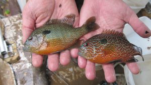 Because of the wide variety of aquatic habitat in the Raccoon Creek Watershed, the diversity of fish species (about 65 total species) is extensive. Near Gallipolis, where Raccoon Creek enters the Ohio River, big river species such as freshwater drum, sauger, gar, mimic shiners, and flathead catfish can be found. In the middle portions of the watershed, creek species are abundant. These include bass, sunfish, grass pickerel, bullhead catfish, darters, and an assortment of shiners. In the upper section of the watershed, headwater species such as creek chubs, redside dace, and blunt nose minnows prevail.